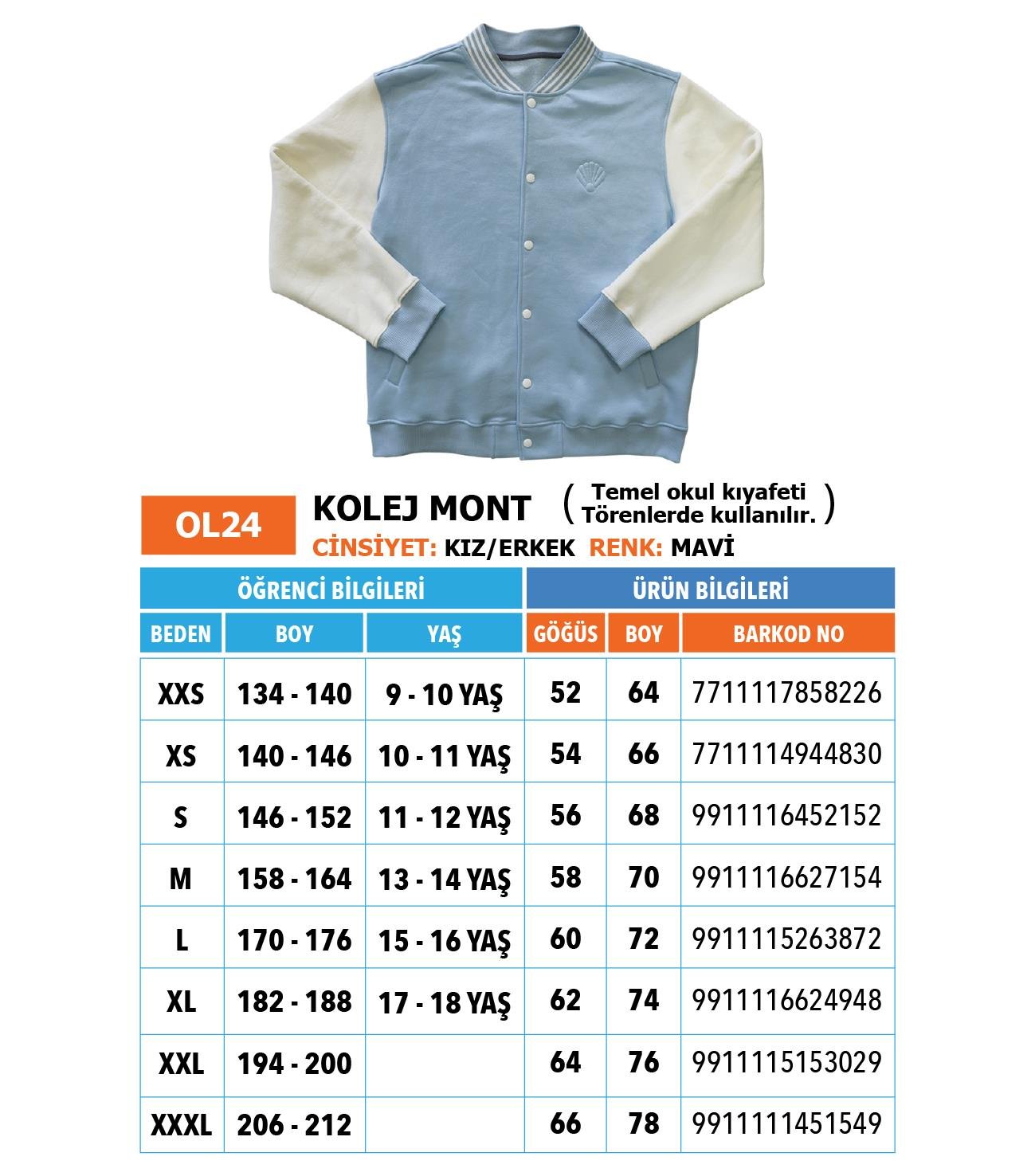Bu Kolej Mont öğrencilerimiz için özel olarak hazırlanmıştır.Yüksek pamuk oranı sayesinde cilt dostudur. Günlük okul kıyafetlerinizle kullanılabilir.